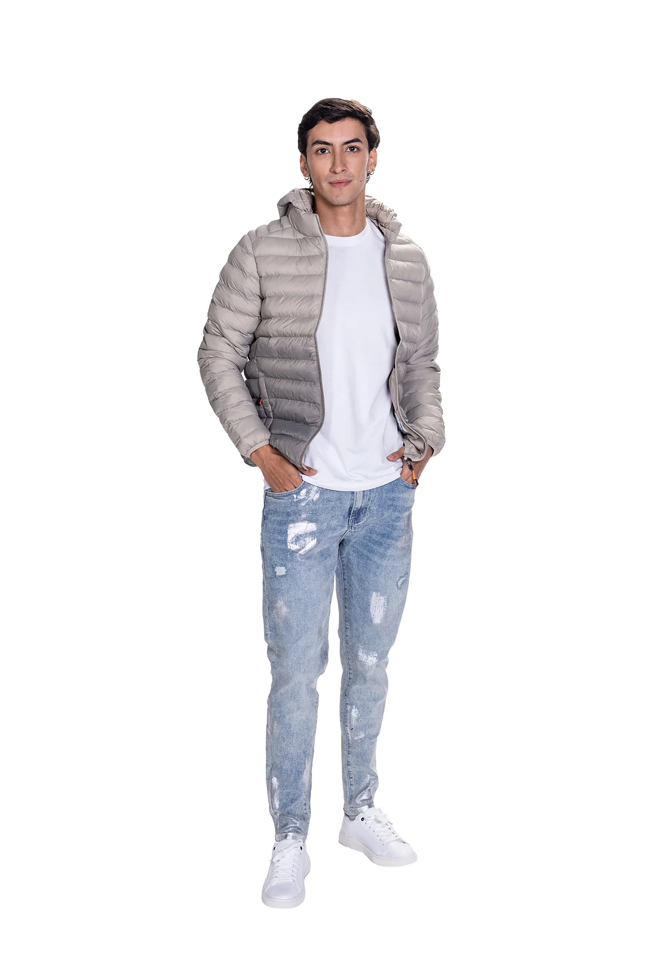 Silueta SEMI AJUSTADA, con cierre de cremallera y bolsillos laterales. Tela rígida.