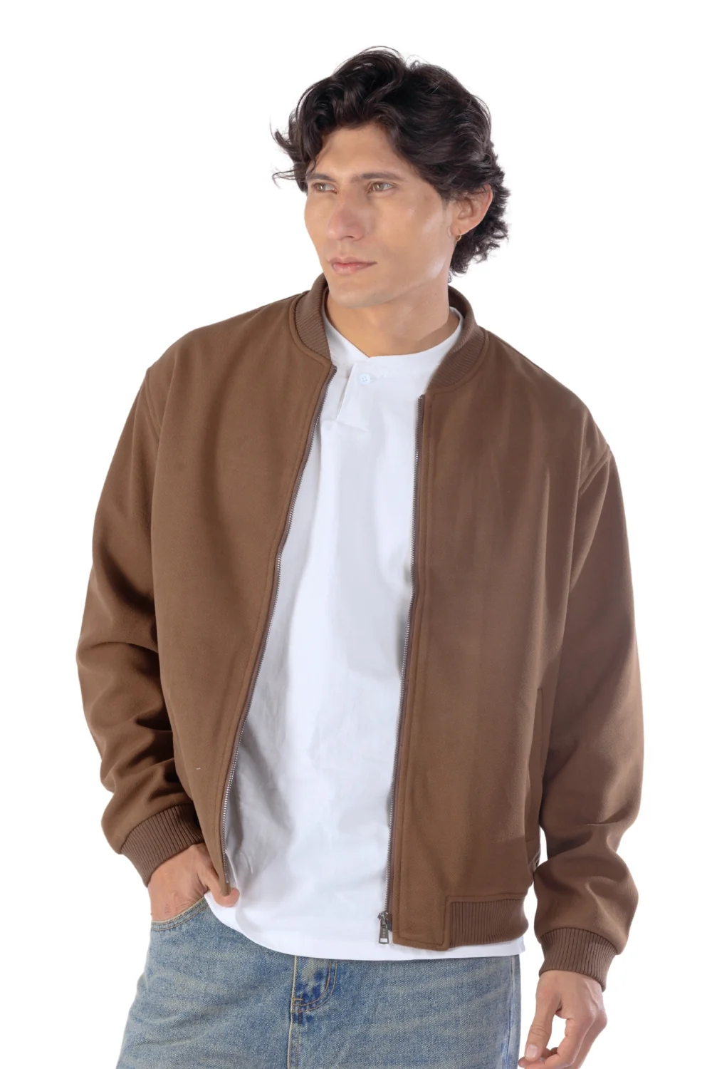 Chaqueta silueta SEMI AJUSTADA, con cierre de cremallera.