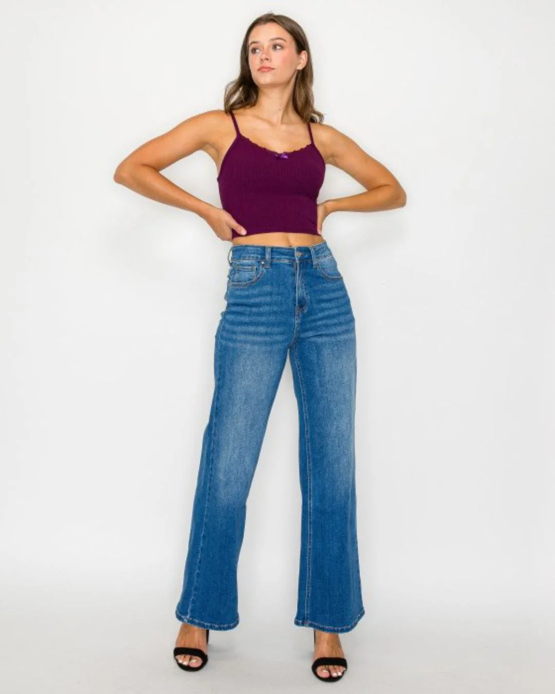 JEANS WAX WID LEG HIGH RISE AZUL PARA DAMA 65%ALGODÓN 30%POLIÉSTER 3%RAYÓN 2%ELASTANO