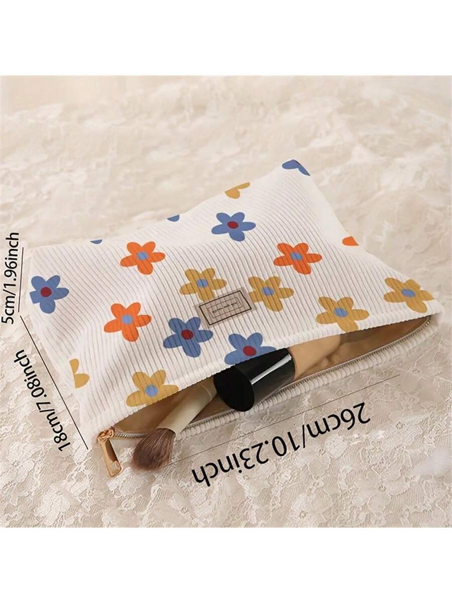 M0005 Bolsa de maquillaje de pana con patrón de lazos, bolsa de almacenamiento de cosméticos con cremallera y peso ligero, organizador versátil de artículos de tocador en estilo dulce, regalo para niñas, mujeres y amigas.