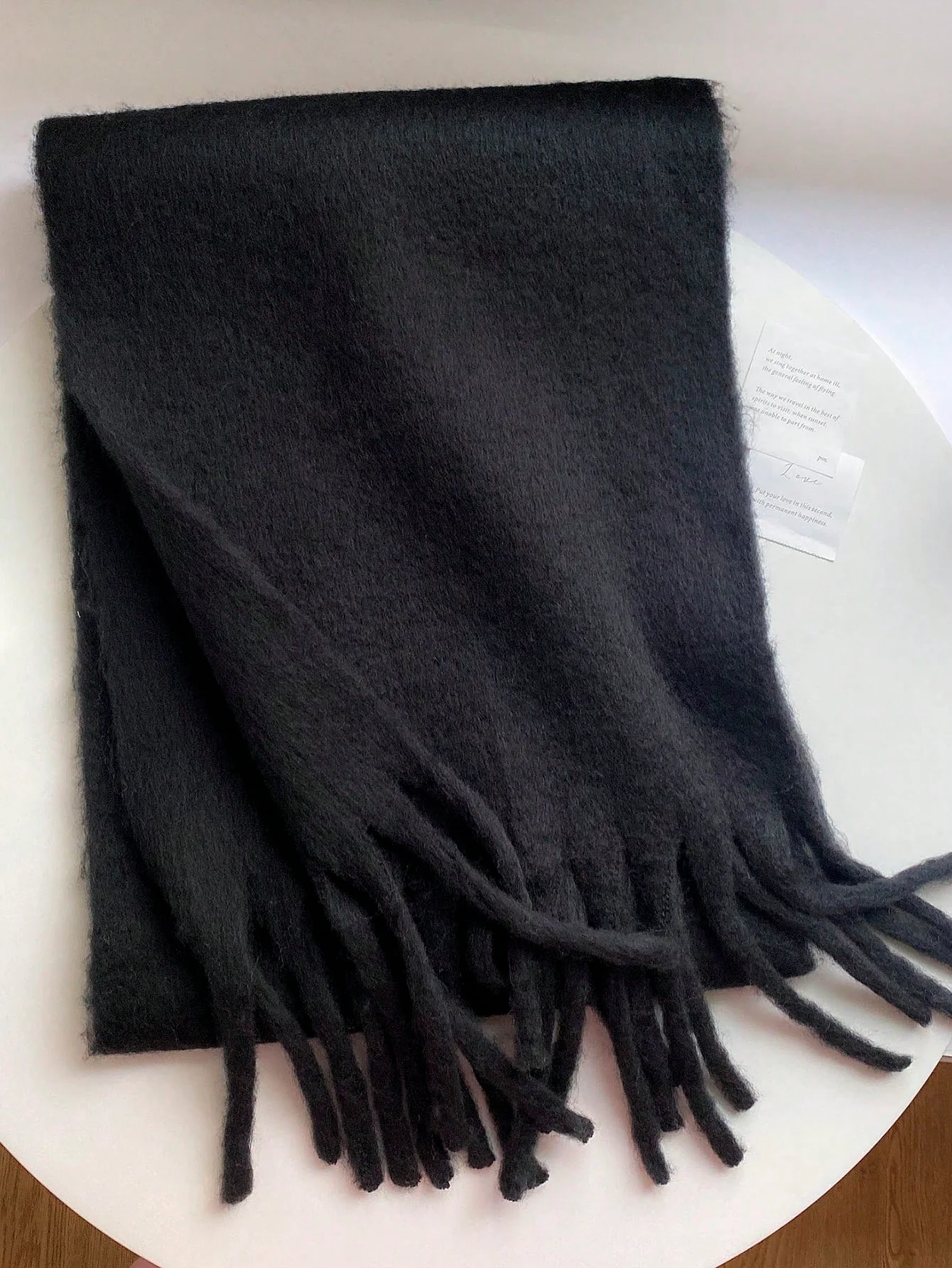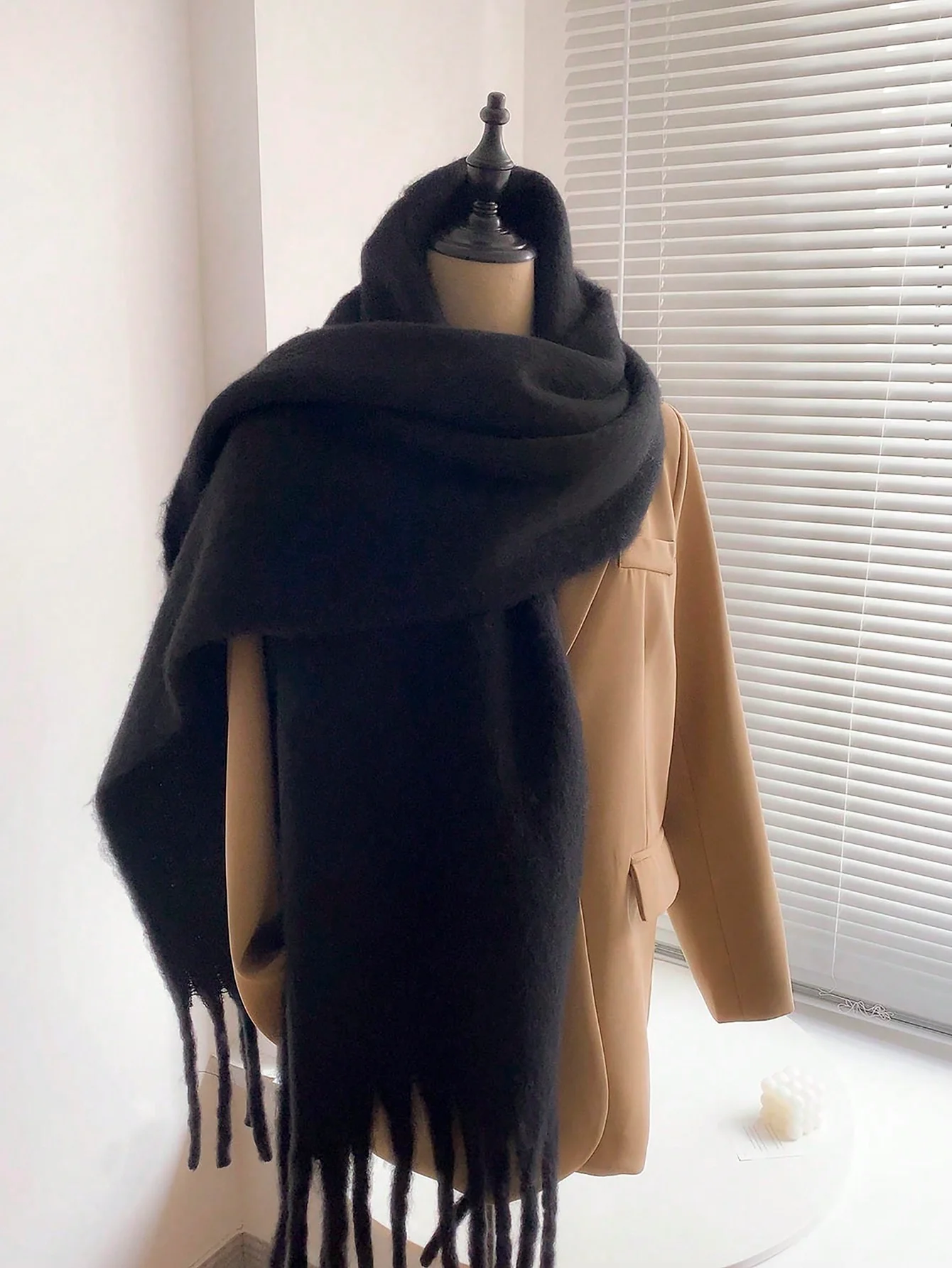 M529 – 1 Pañuelo De Invierno Para Mujeres Con Borlas Negras Sólidas, Chal De Otoño E Invierno Para Mujeres, Pañuelo Suave Y Cómodo Para Mantenerse Abrigado Al Aire Libre En Invierno Casual