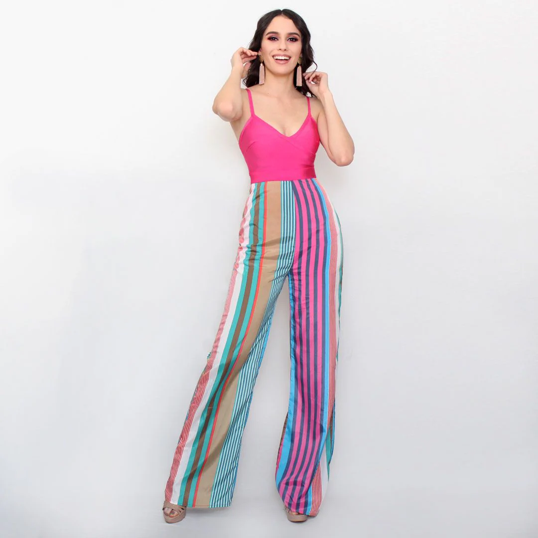 TIPO DE ESTAMPADO: líneas de colores en el pantalón