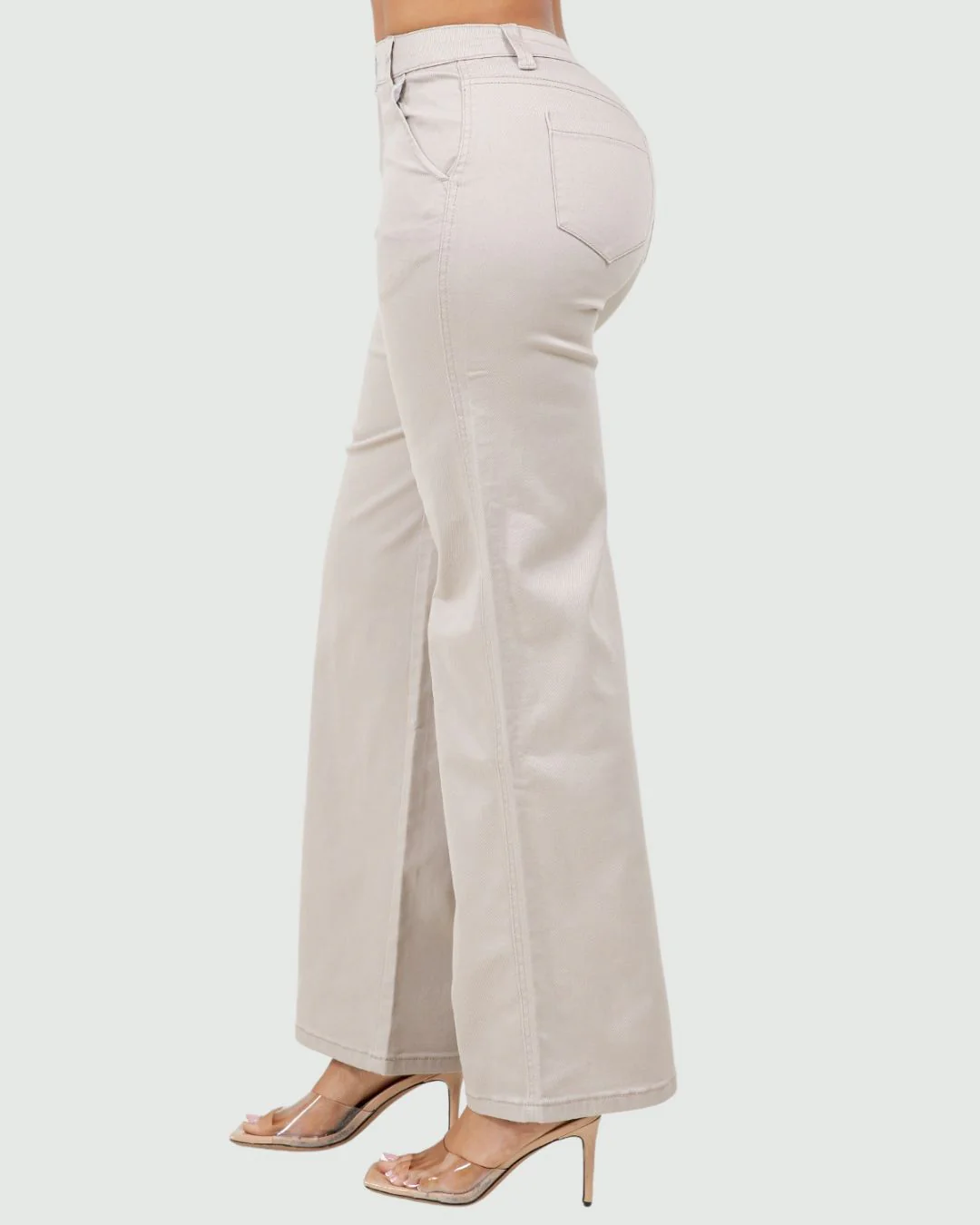 PANTALON ENCORE BEIGE WIDE LEG PARA DAMA 98% ALGODÓN, 2% ELASTANO