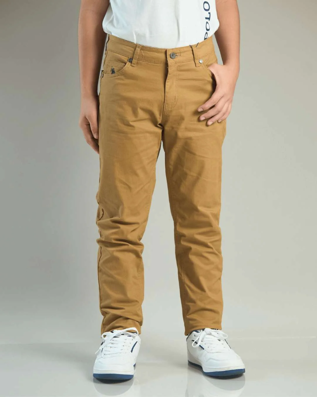 PANTALON TWILL US POLO CAMEL PARA NIÑO 98% ALGODÓN, 2% ELASTANO