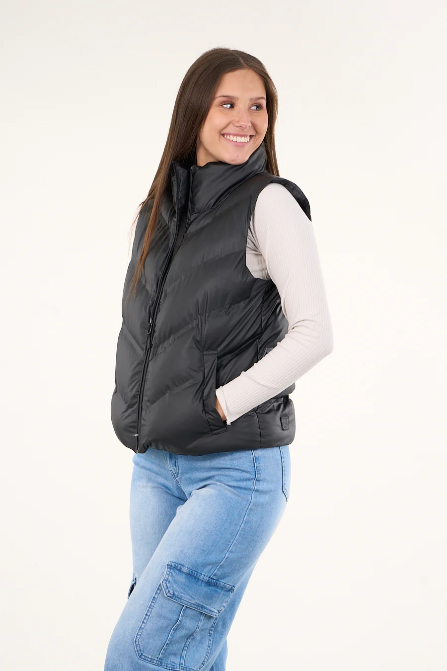 Nuestros diseñadores crearon esta Parka sin mangas engomada y con polar en el interior. Es perfecta para los fríos dias inverno.