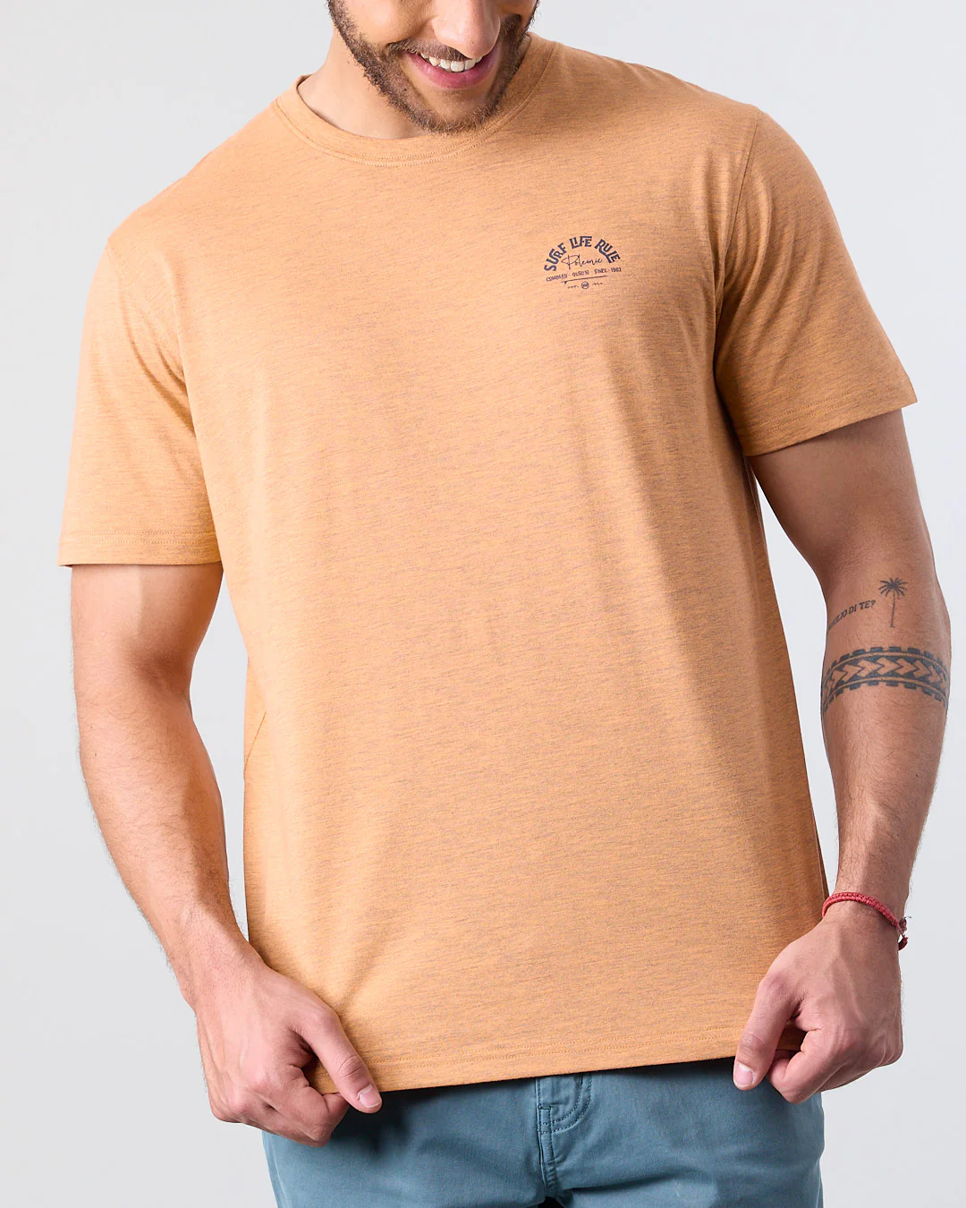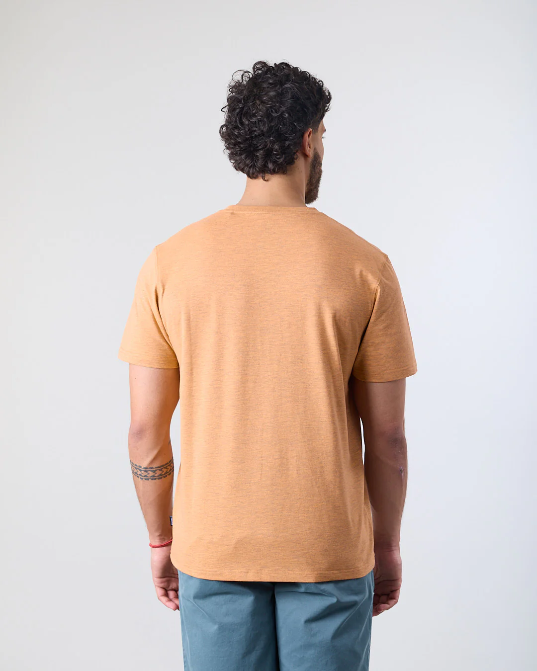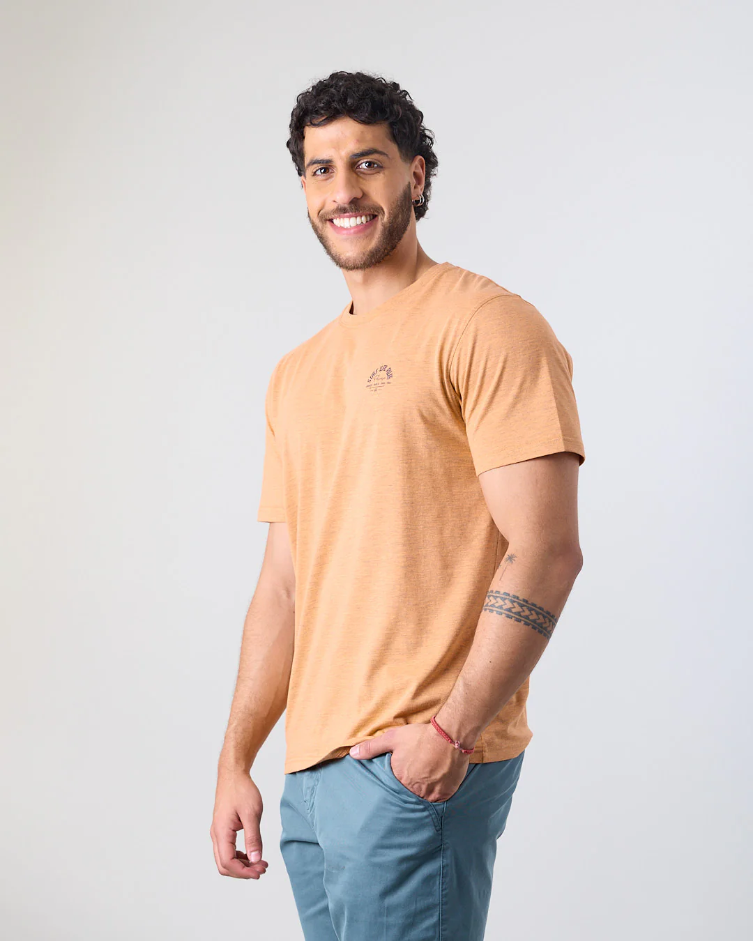 Polera manga corta hombre confeccionada con 60% algodón y 40% poliéster, en color Melange. El cuello redondo clásico y calce Modern Fit la convierten en una elección ideal tanto para la ciudad como para una salida casual. El calce Modern Fit es el punto medio entre Slim Fit y corte Recto, entrega más comodidad y libertad de movimiento.