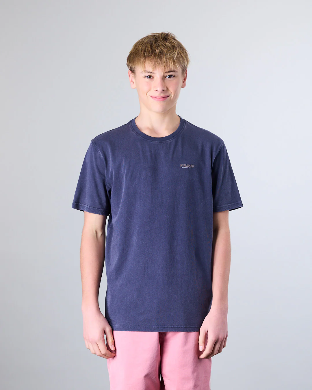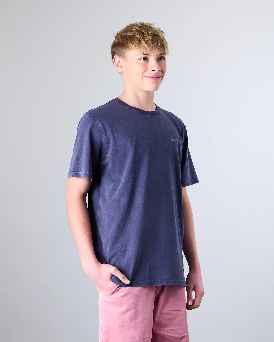 Polera manga corta Junior confeccionada con 100% algodón en tela procesada. Cuello redondo clásico y calce Modern Fit la convierten en una elección ideal tanto para la ciudad como para una salida casual. El calce Modern Fit es un corte más holgado, con una silueta suelta y relajada, pero no oversize.