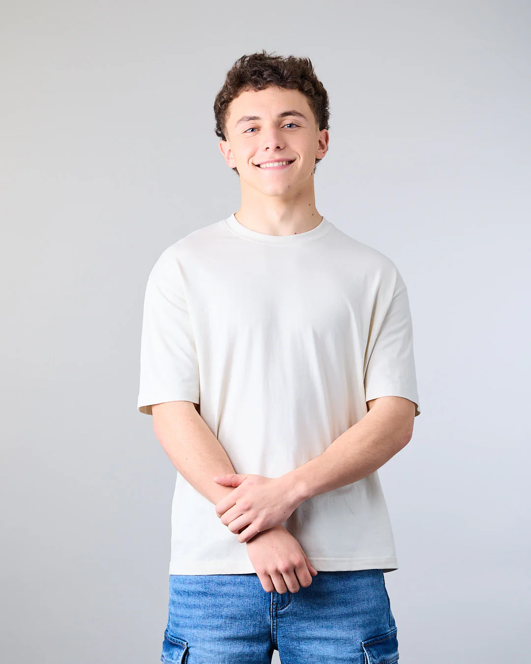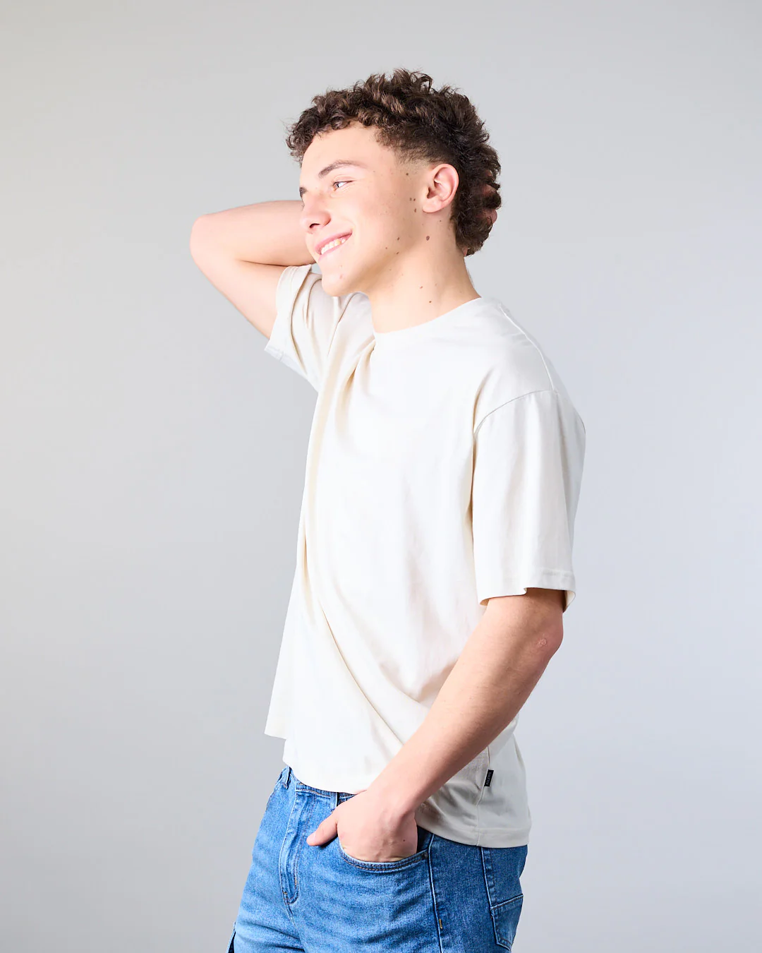 Polera manga corta juvenil confeccionada con 100% algodón. Cuello redondo clásico y calce Relaxed Fit la convierten en una elección ideal tanto para la ciudad como para una salida casual. El calce Relaxed Fit es un corte más holgado, con una silueta amplia y relajada, pero no oversize.