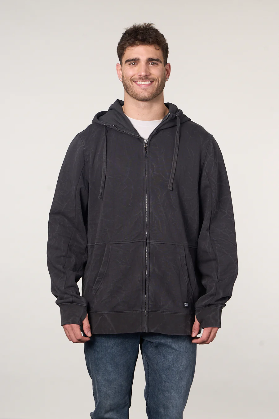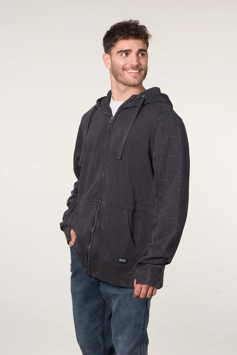 Poleron hombre con cierre, capucha y tela procesada ideal para disfrutar en la ciudad con un estilo slow fashion. Fabricado con materiales de alta calidad y un enfoque en la durabilidad, esta poleron se convierte en tu compañero ideal para cada día.