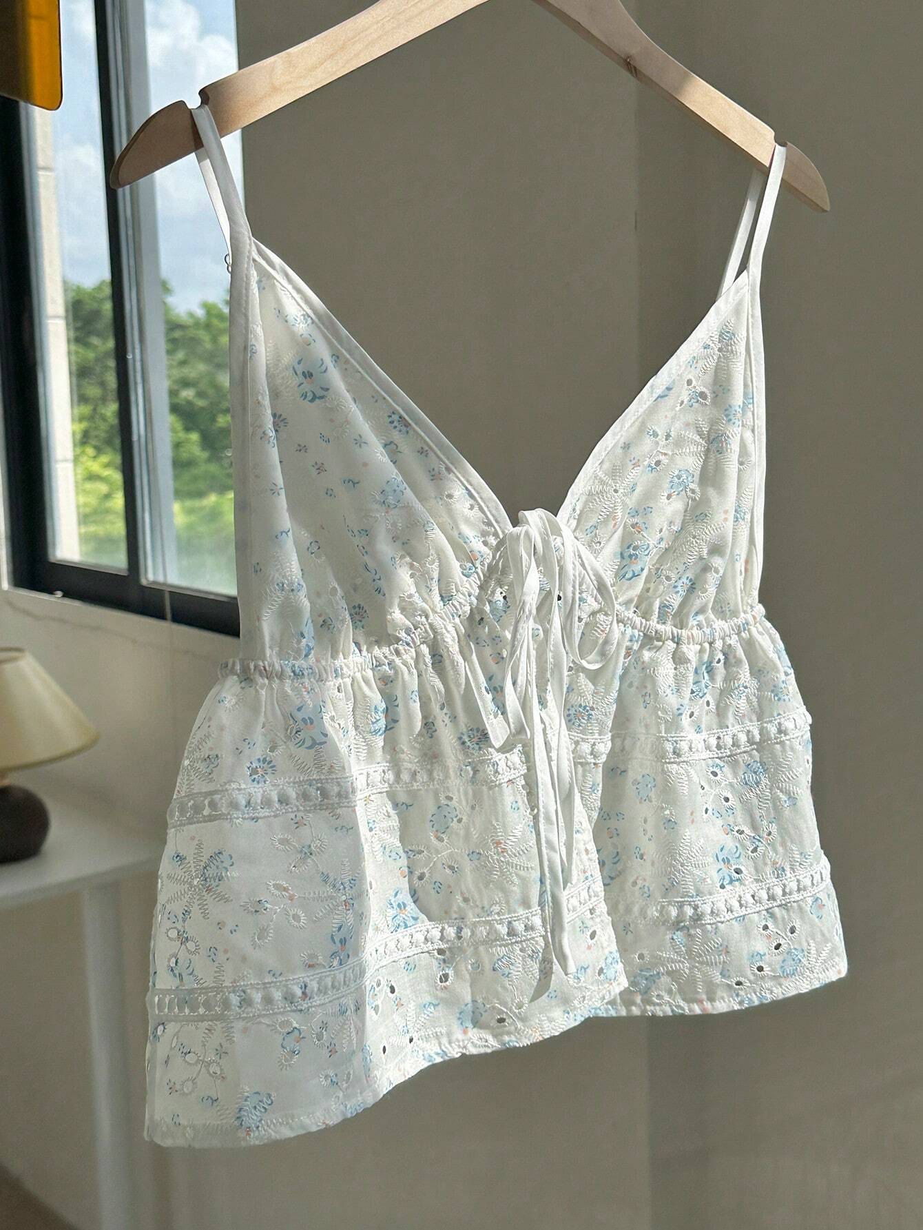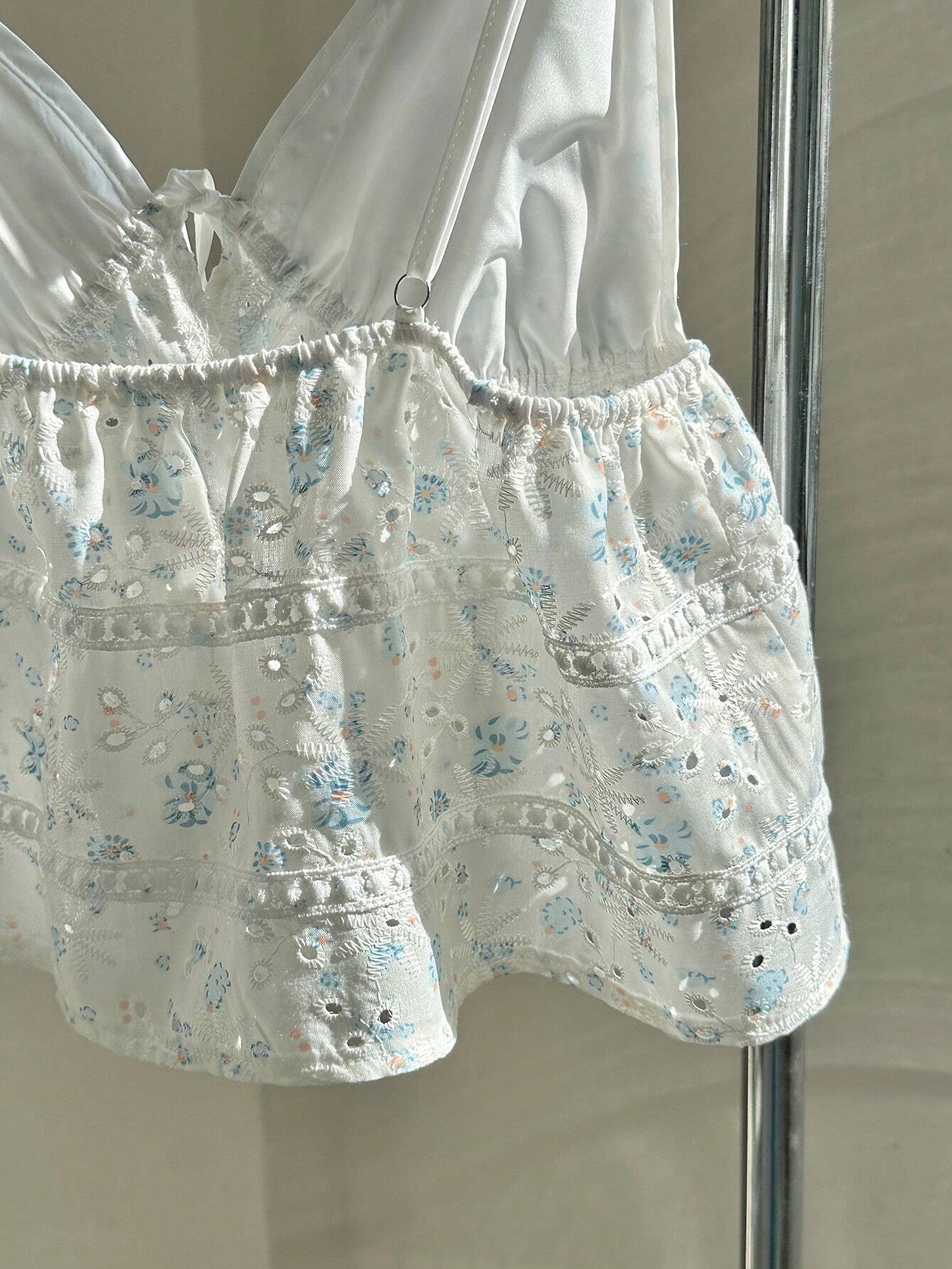 Detalles : Volante, Bajo con volante, Bordado de ojal