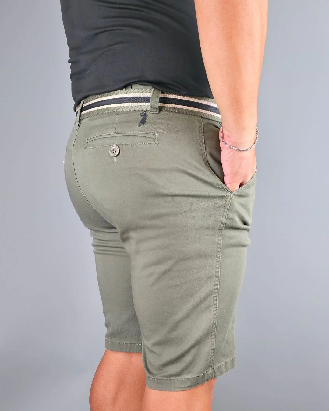 SHORT CAMBRIDGE POLO VERDE MUSGO CON FAJA PARA CABALLERO, 97% ALGODÓN, 3% LICRA