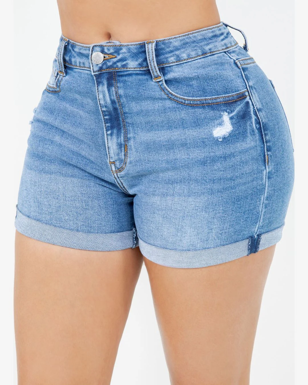 SHORT ENCORE AZUL ROTO CON RUEDO PARA DAMA 93% ALGODÓN, 5% POLIESTER, 2% ELASTANO