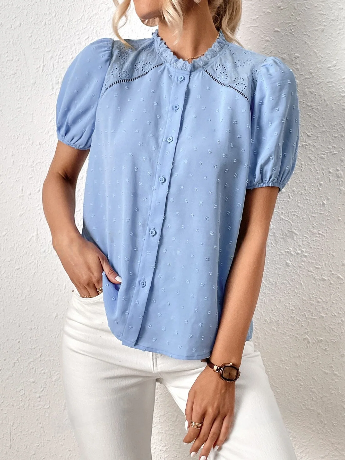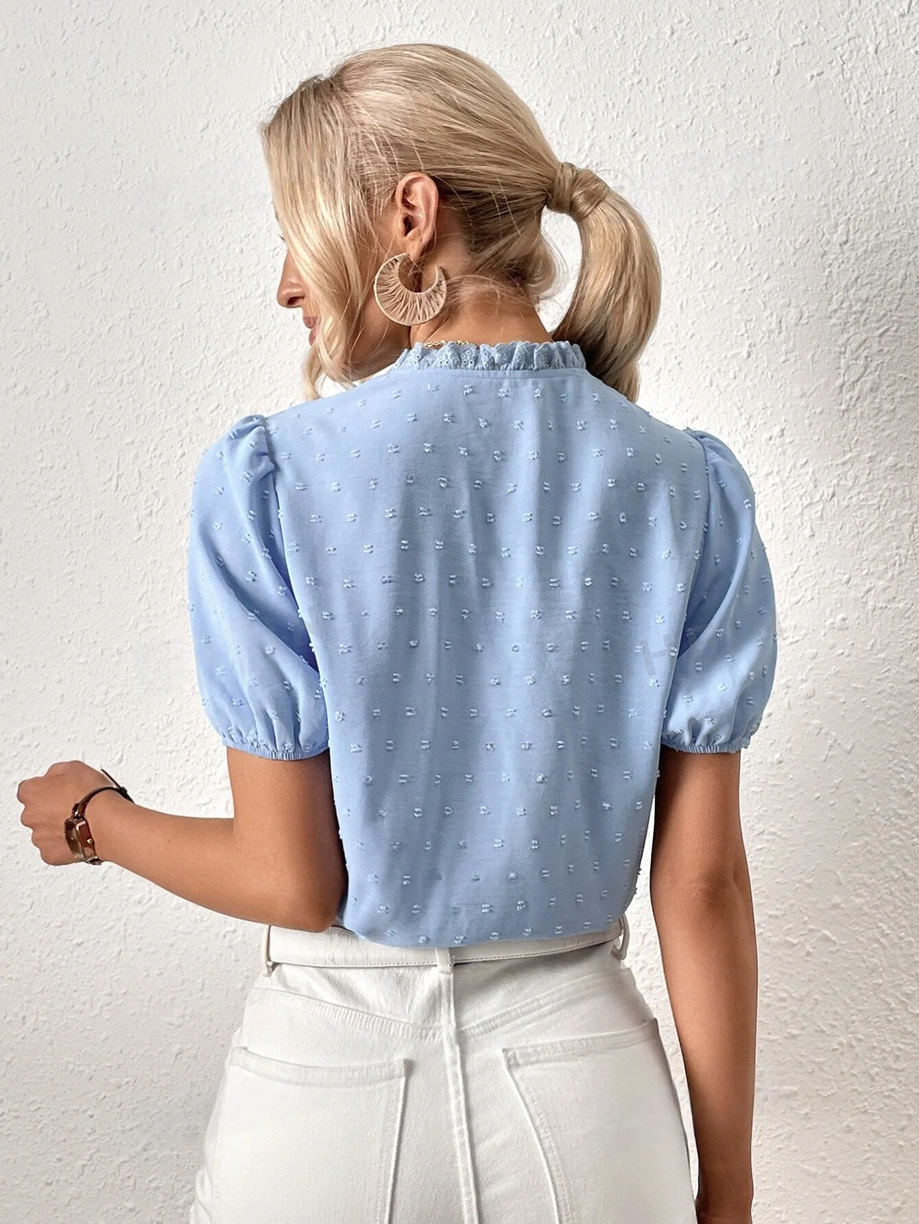 ST0056 Blusa de lunares ribete fruncido de manga farol