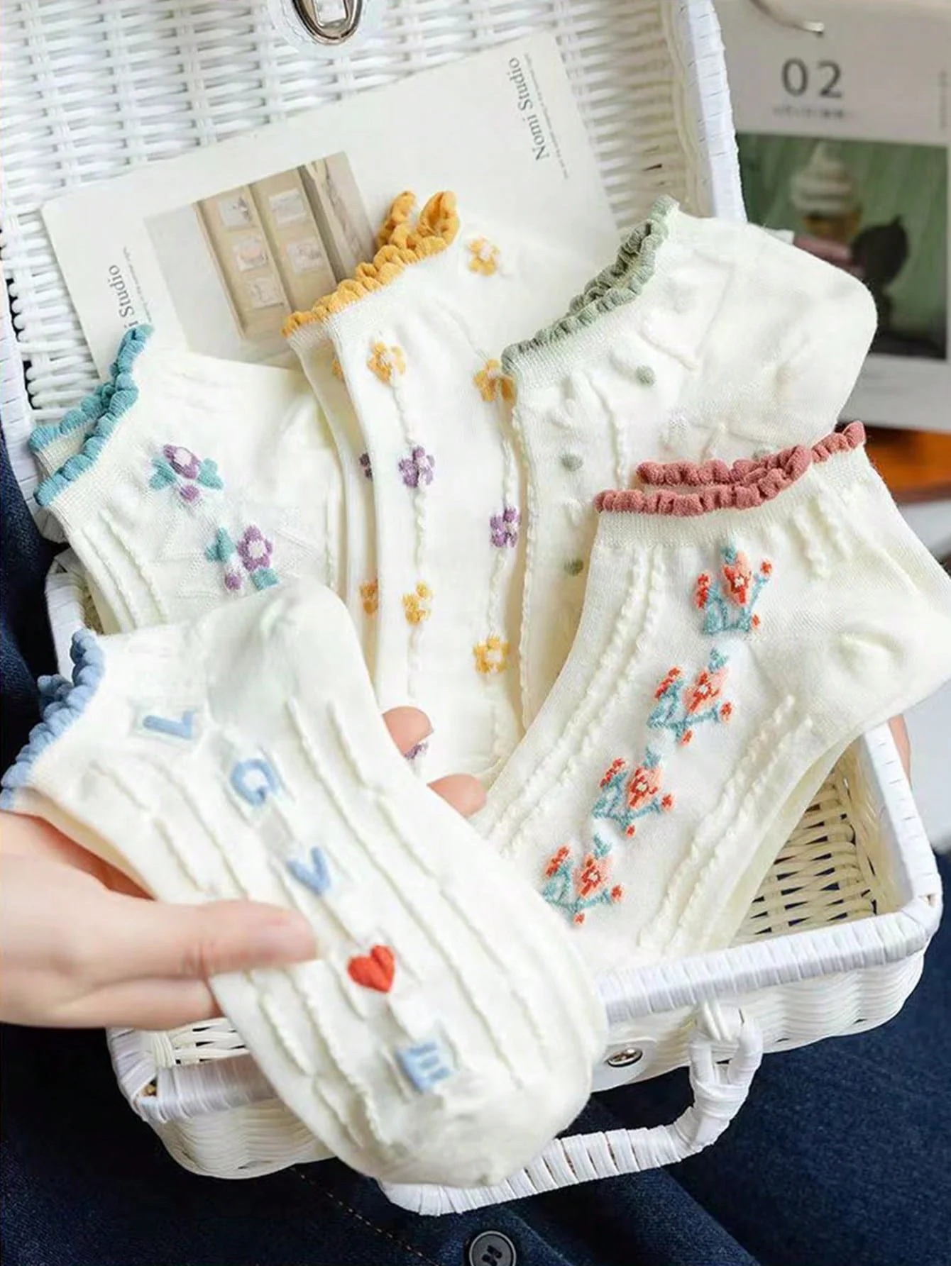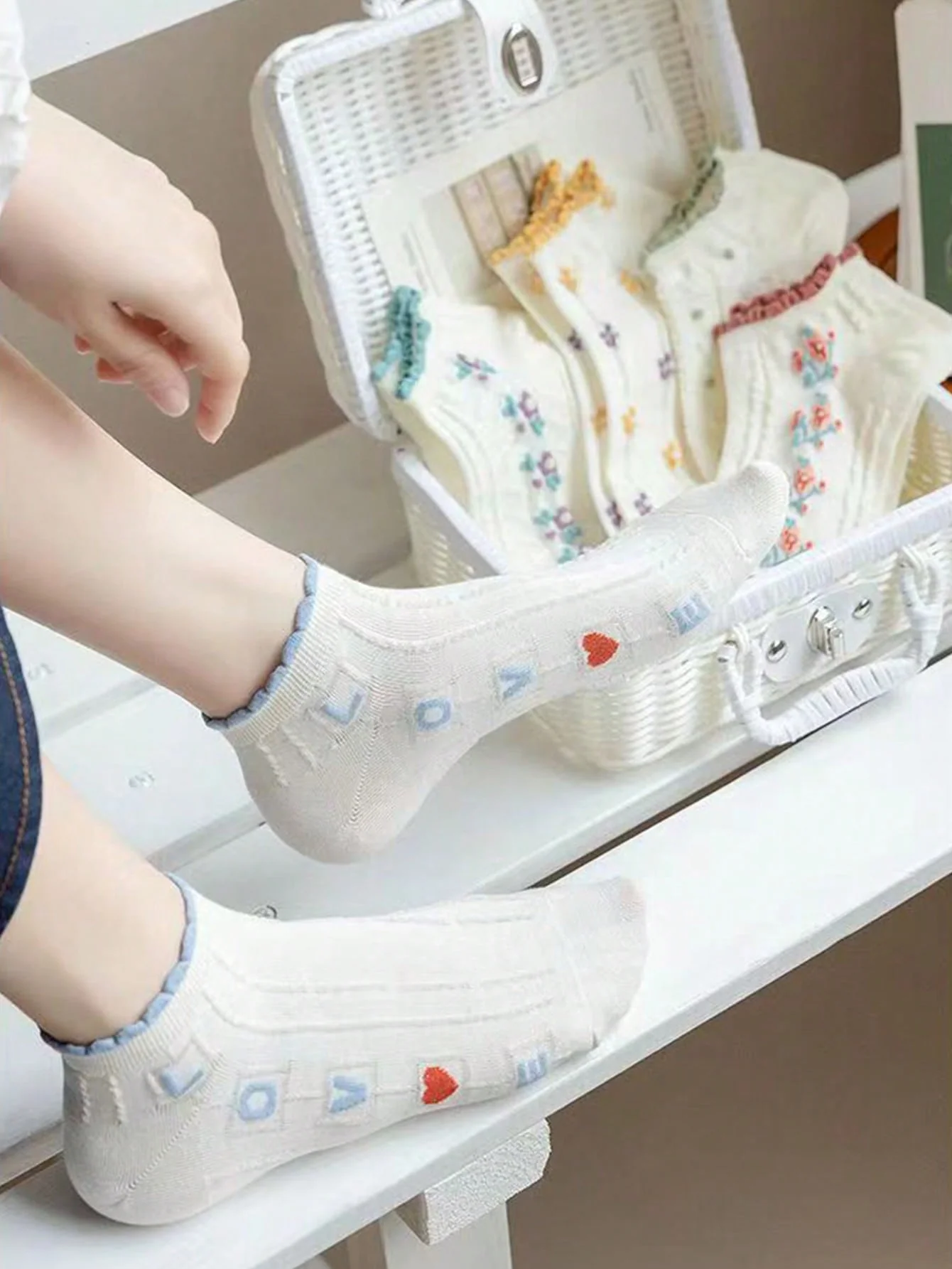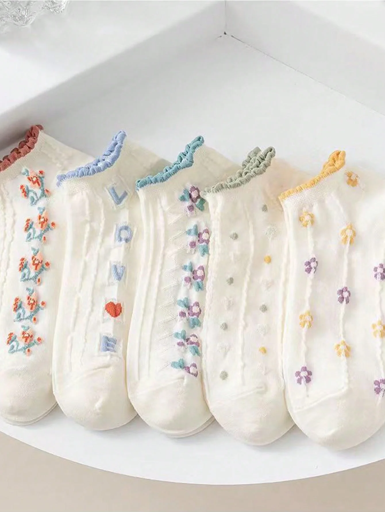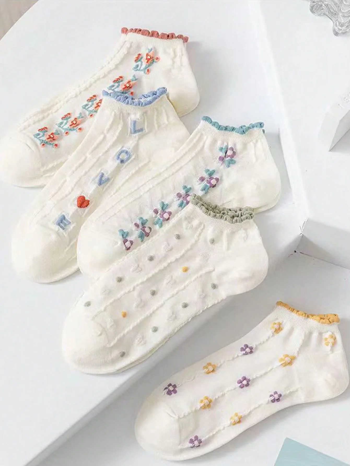 ST0724 5 Pares/set Calcetines Con Patrón De Dibujos Animados Para Mujeres Delgados, Transpirables Y Absorbentes Del Sudor Para Todas Las Estaciones