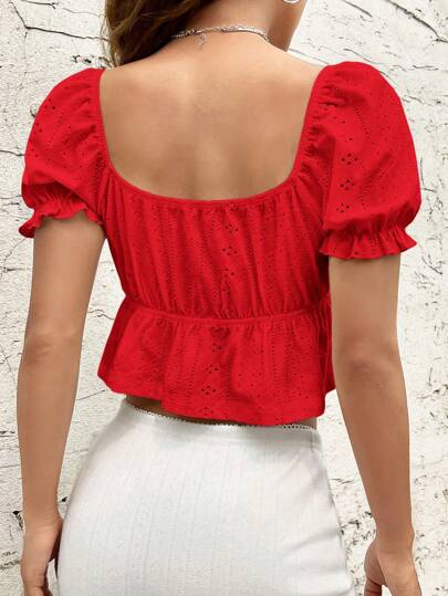Detalles: Bajo con volante, Nudo, Bordado de ojal,