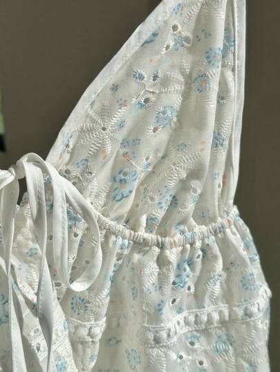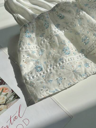 Detalles: Espalda al aire, Bajo con volante, Bordado de ojal,