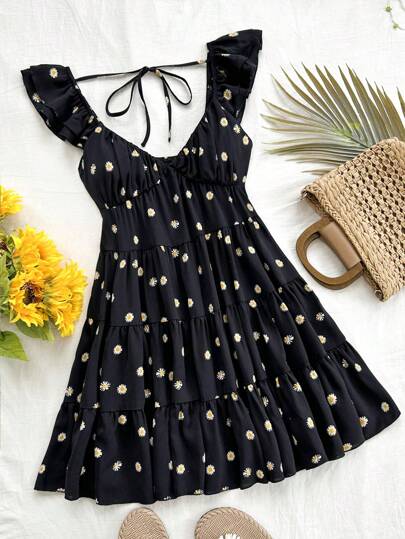 Detalles: Espalda al aire, Volante, Bajo con volante,