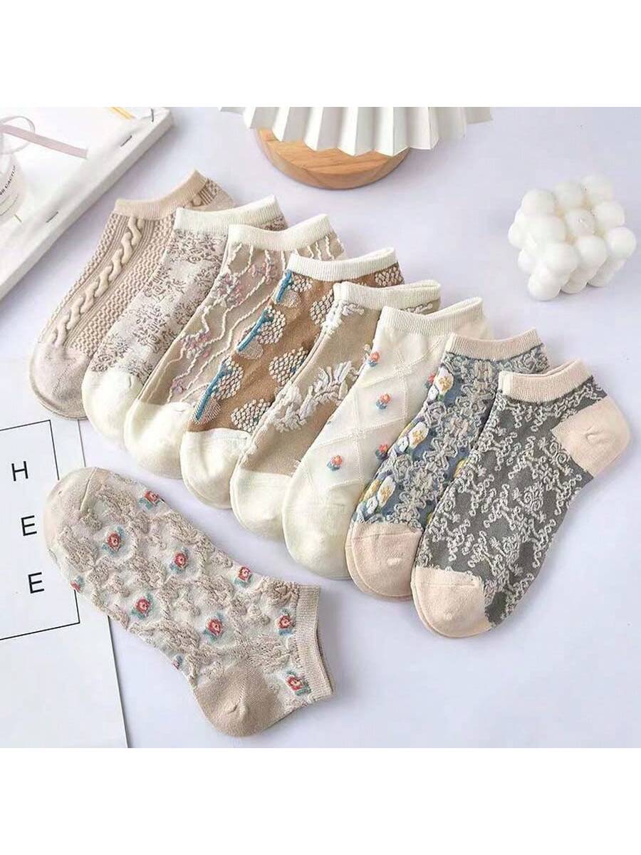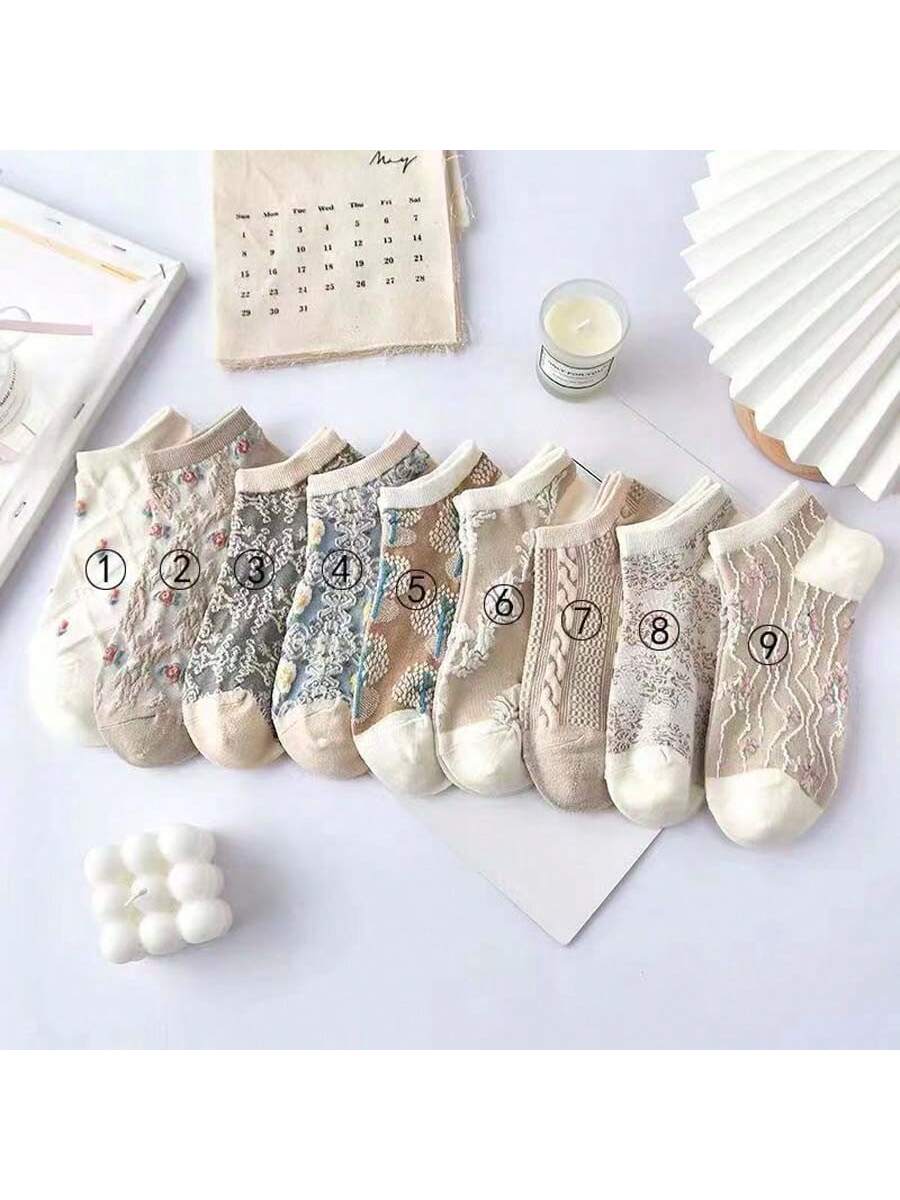 ST1789 -9piezas Calcetines cortos de bote para mujeres