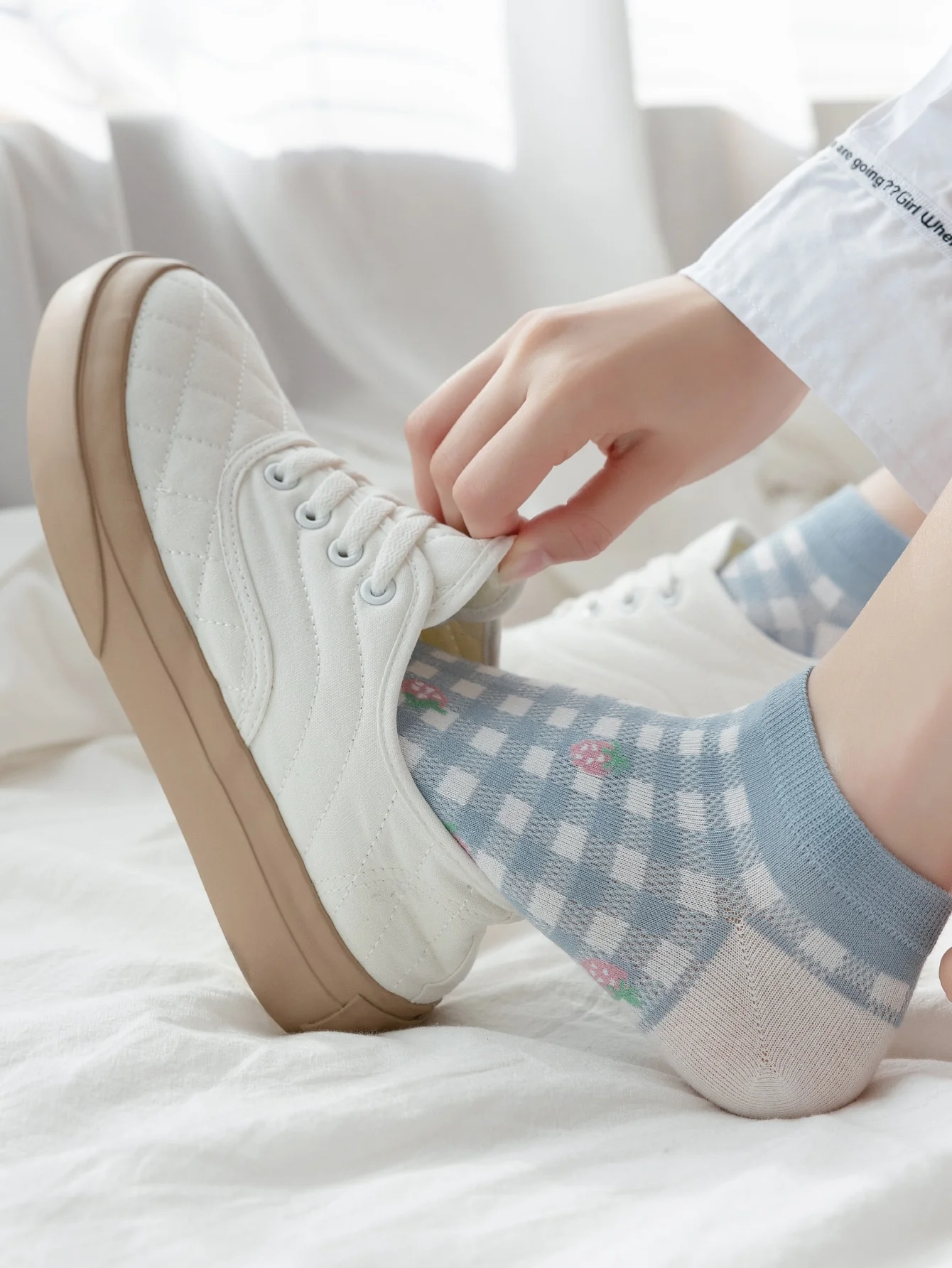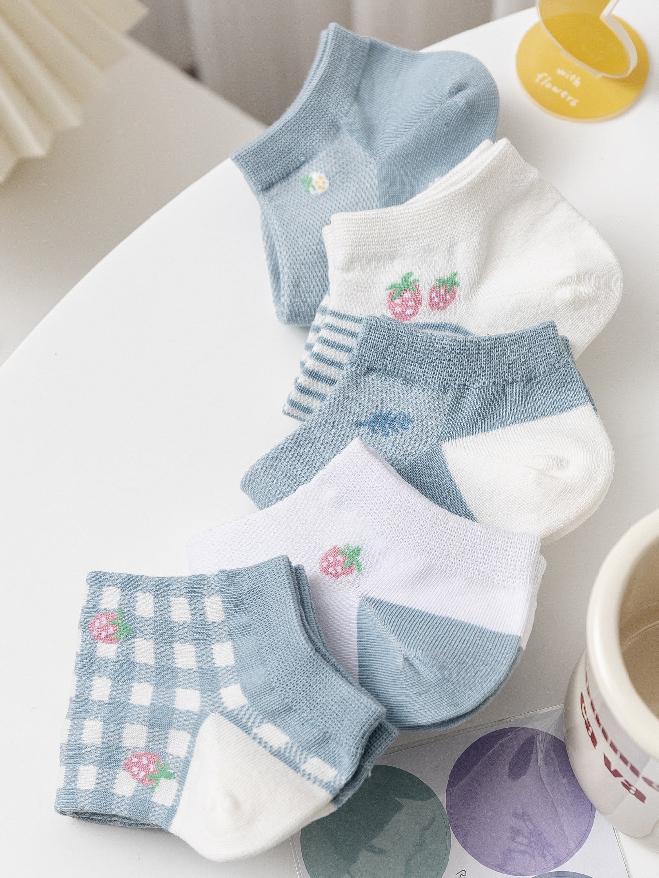 ST311 – 5 pares de calcetines de mujer transpirables y absorbentes de humedad con diseño de malla de fresa