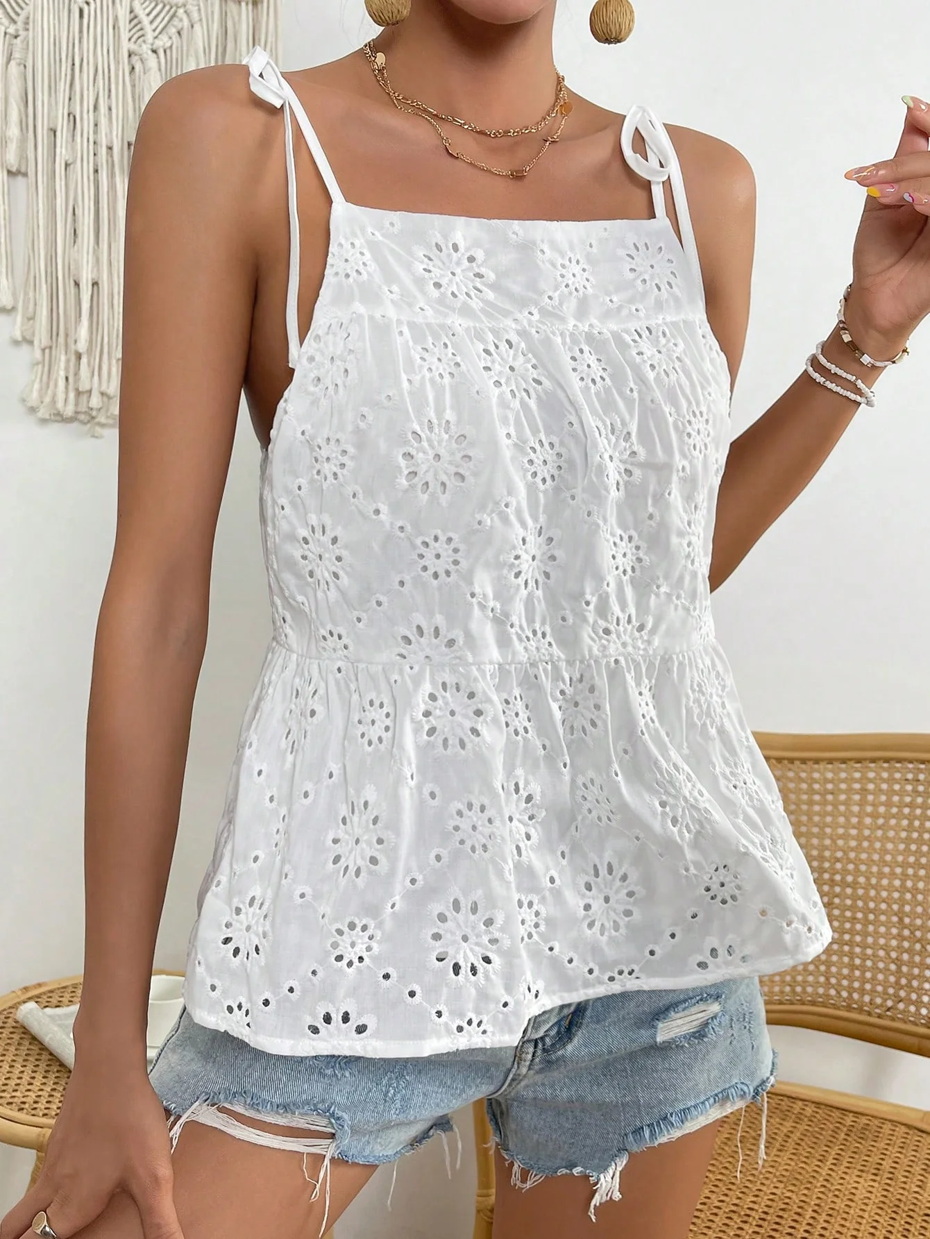 Detalles : Bajo con volante, Nudo, Bordado de ojal