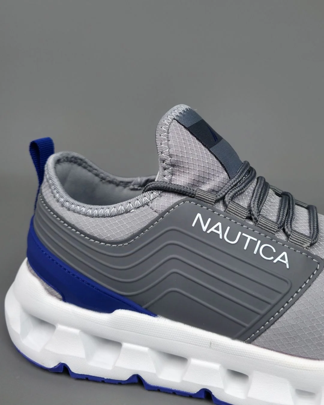 TENNIS NAUTICA DE HOMBRE GRIS CON DETALLES EN AZUL, SUELA BLANCA