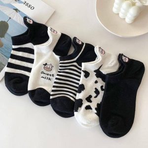 ST908-5 pares Calcetines tobilleros con estampado de vaca